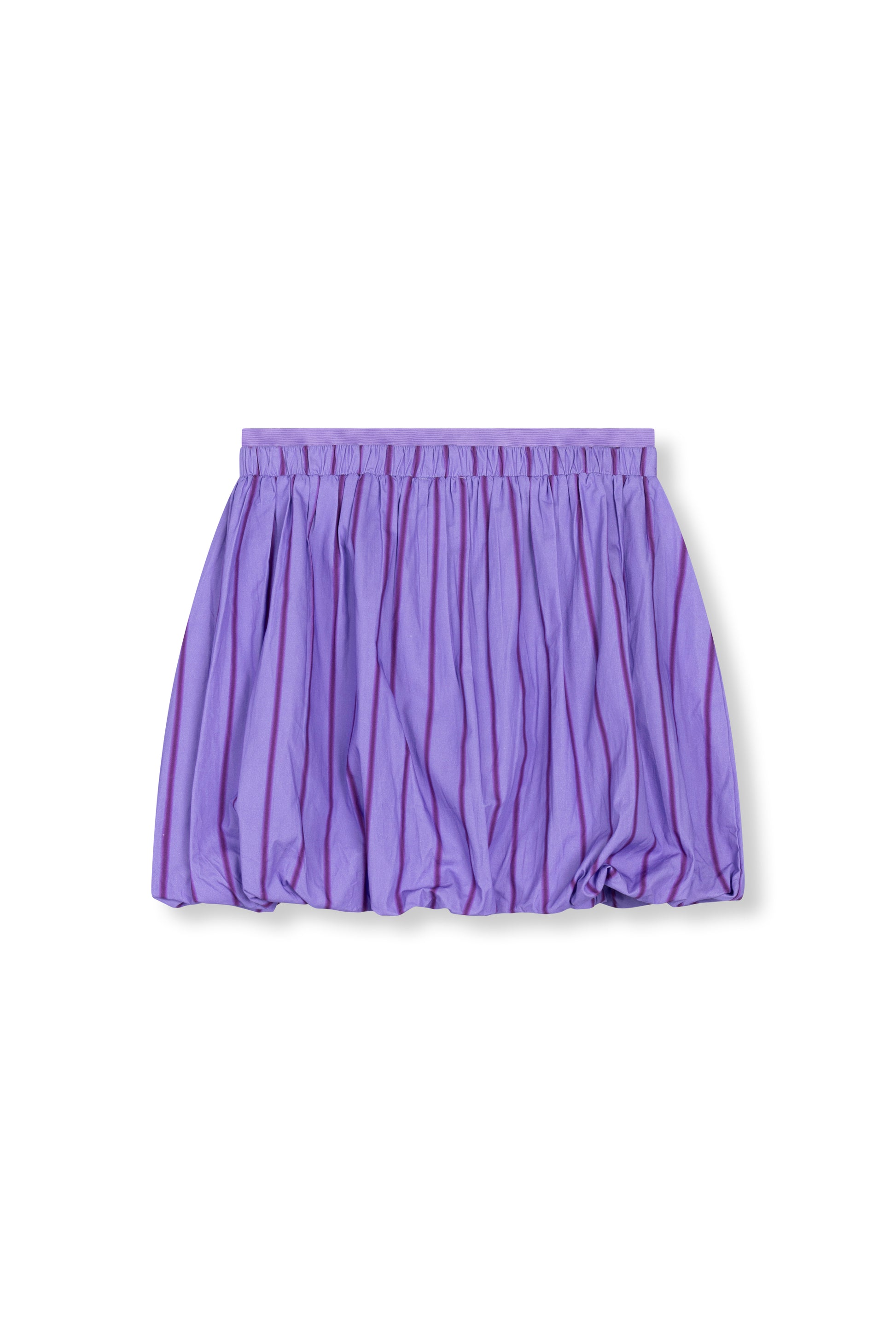 Dit korte balloon rokje is gemaakt van een luchtige 100% katoenen stof met een subtiel streeppatroon. De dubbele elastische tailleband zorgt voor een comfortabele fit, terwijl het elastiek aan de onderzoom het balloon effect extra mooi benadrukt. Een speels en trendy item dat je look meteen afmaakt.