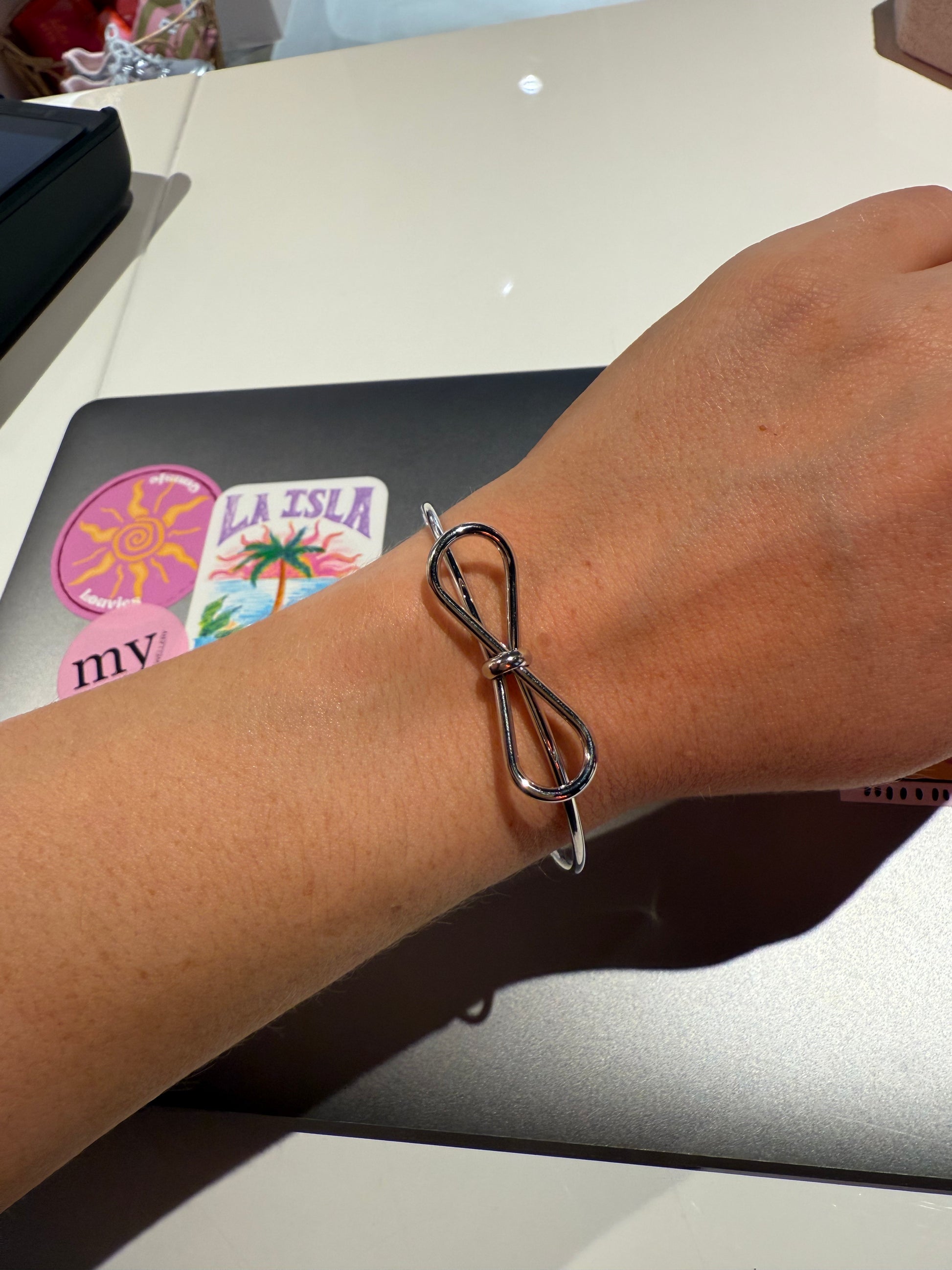 Subtiel, stijlvol en met een vleugje speelsheid: deze zilveren bangle met strikje is een echte musthave. Het verfijnde strikdetail geeft de armband een vrouwelijke en elegante uitstraling, terwijl het minimalistische design ervoor zorgt dat je ’m moeiteloos met al je andere sieraden combineert. Perfect voor dagelijks gebruik én speciale gelegenheden.
