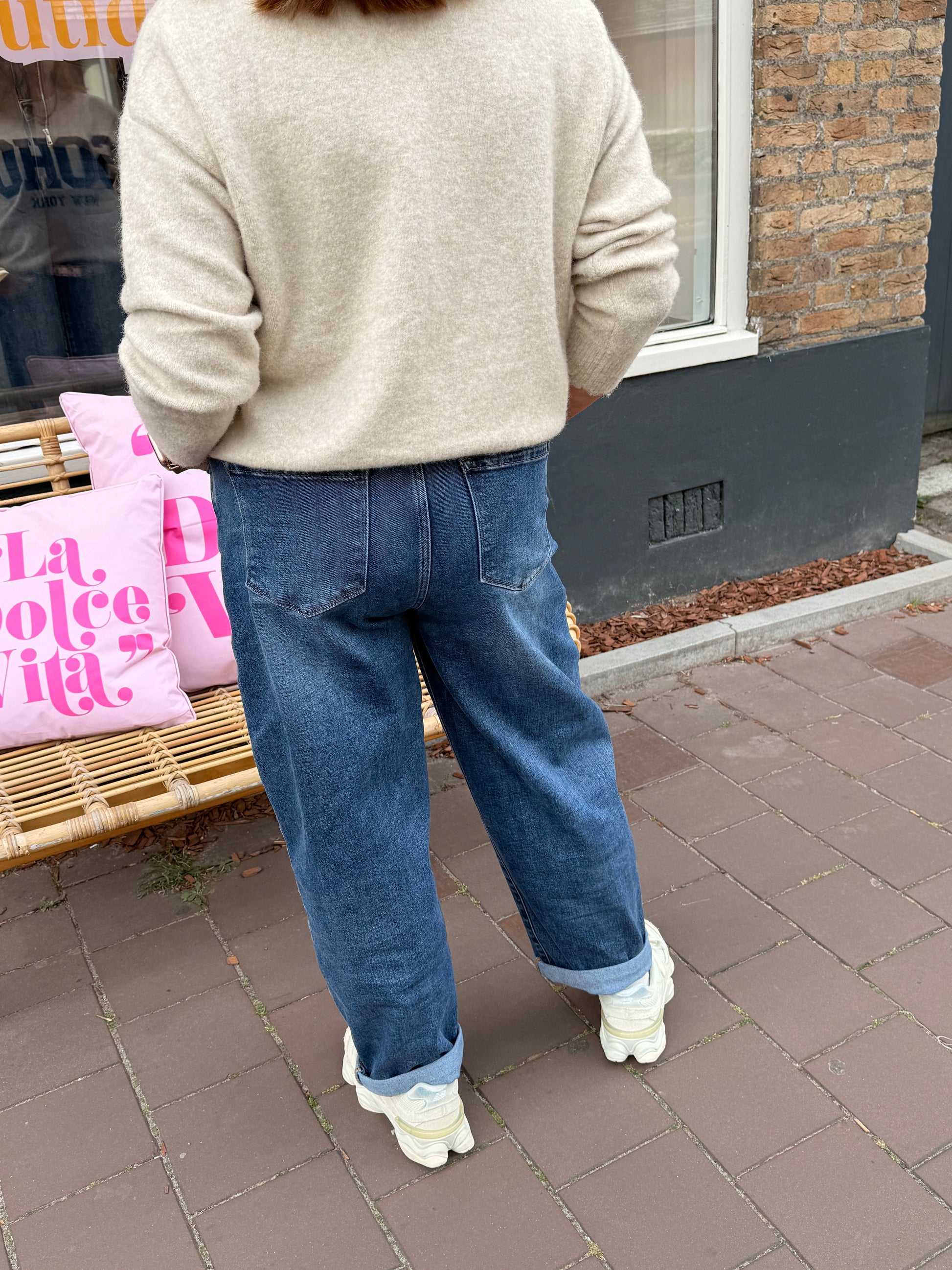 Deze jeans geeft je outfit een frisse, moderne touch. Het ballon fit model met high waist zorgt voor een comfortabele pasvorm én een trendy, speels silhouet. De donkere denim wassing maakt hem perfect voor het nieuwe seizoen en combineert moeiteloos met zowel basics als opvallende tops. Een echte eyecatcher die je look direct een fashion upgrade geeft.