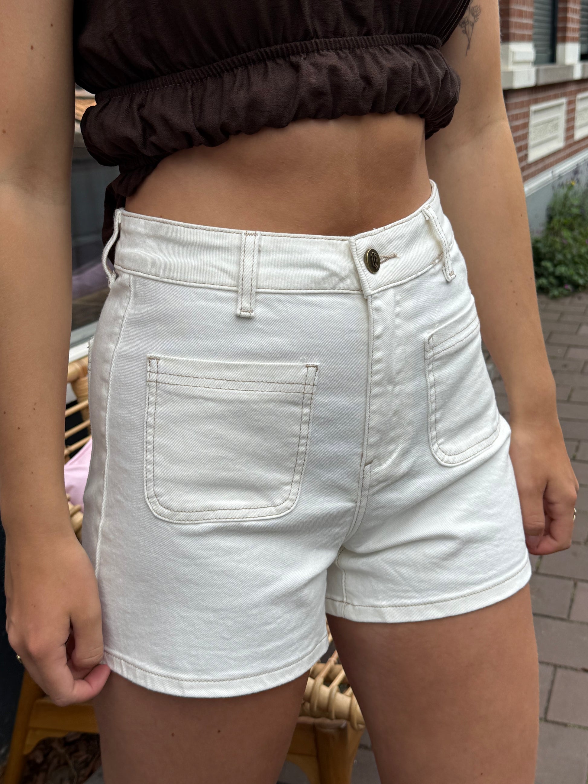 Dit ecrukleurige shortje is een zomerse must-have met oog voor detail. De donkerbruine stiksels zorgen voor een mooi contrast en geven ‘m net die unieke look. De speelse zakjes aan de voor- en achterkant maken het helemaal af. Gemaakt van een zachte stof met lekkere stretch, dus hij zit niet alleen top, maar beweegt ook fijn met je mee. Casual, stijlvol en perfect voor zonnige dagen.