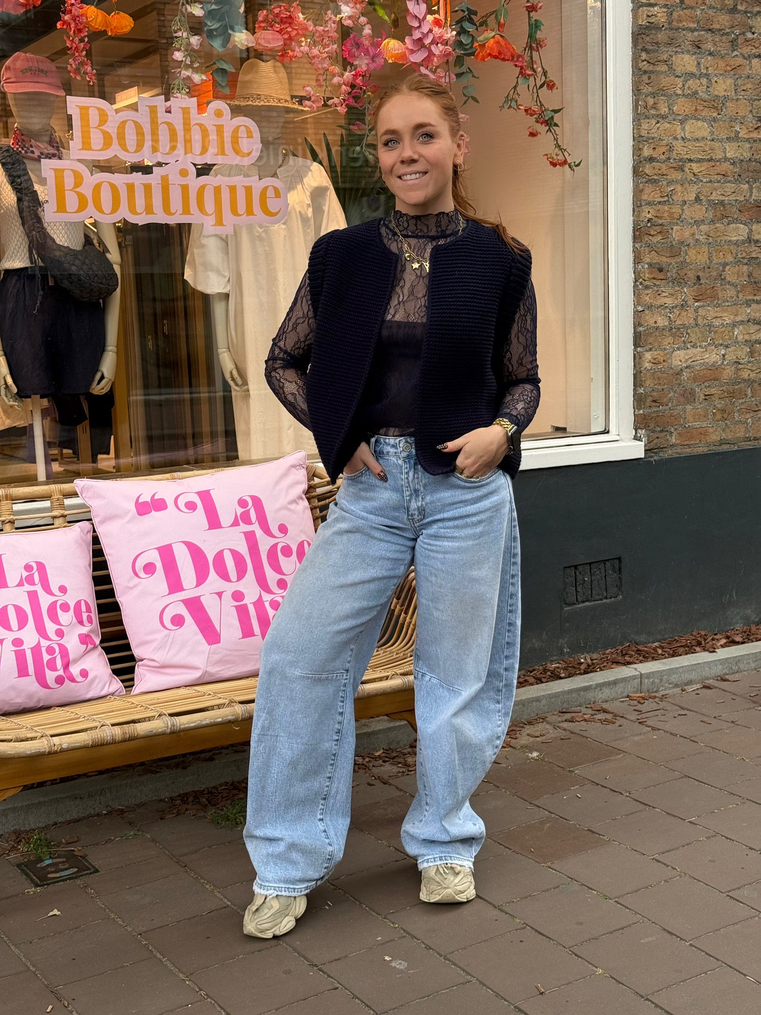Dit stijlvolle gilet is een echte wardrobe essential. Het mooie ribbelmotief geeft het item een luxe uitstraling en maakt het net wat specialer. Perfect te combineren met een kanten top eronder en een jeans voor een elegante maar toch casual look. Een veelzijdig stuk dat je keer op keer kunt stylen van dagelijks draagbaar tot chic en vrouwelijk.
