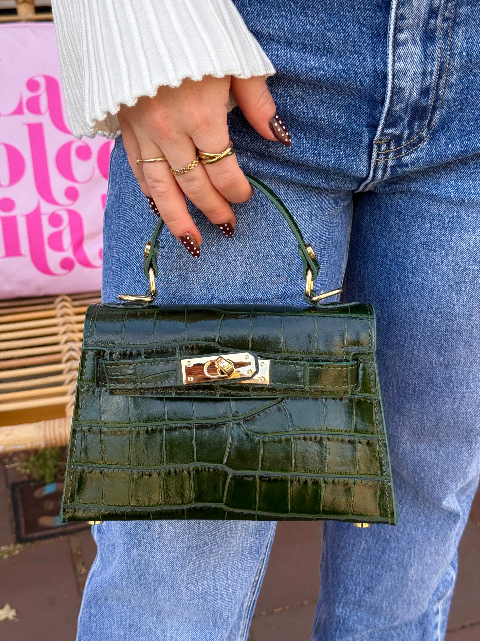 Deze compacte tas ziet er klein uit, maar biedt verrassend veel ruimte voor al je essentials. Verkrijgbaar in zwart en groen met een subtiel slangenprintje, waardoor hij een stijlvolle en trendy touch krijgt. Het gouden detail maakt de tas elegant en af, ideaal om je look compleet te maken, zowel dagelijks als voor een avondje uit.