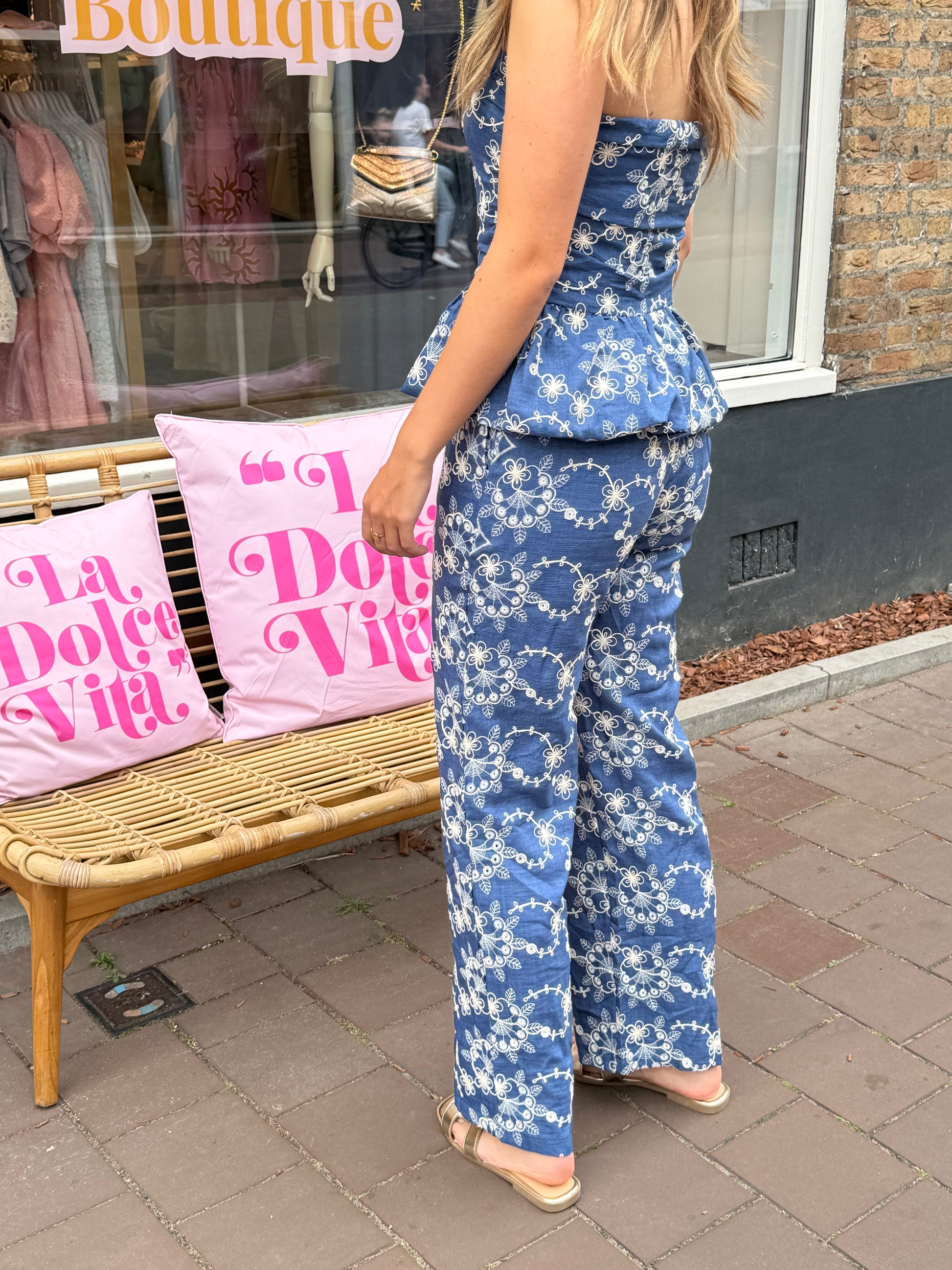 Deze denim-look broek met geborduurde bloemen is girly, speels én super comfy. De rechte pijpen en high waist zorgen voor een relaxte fit, terwijl de lichte stof perfect is voor zonnige dagen. Combineer ‘m met de matching top voor een effortless co-ord look.