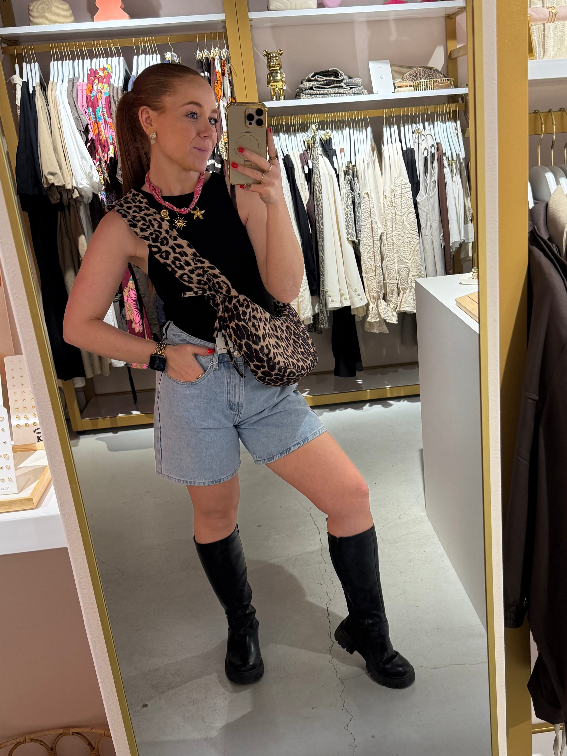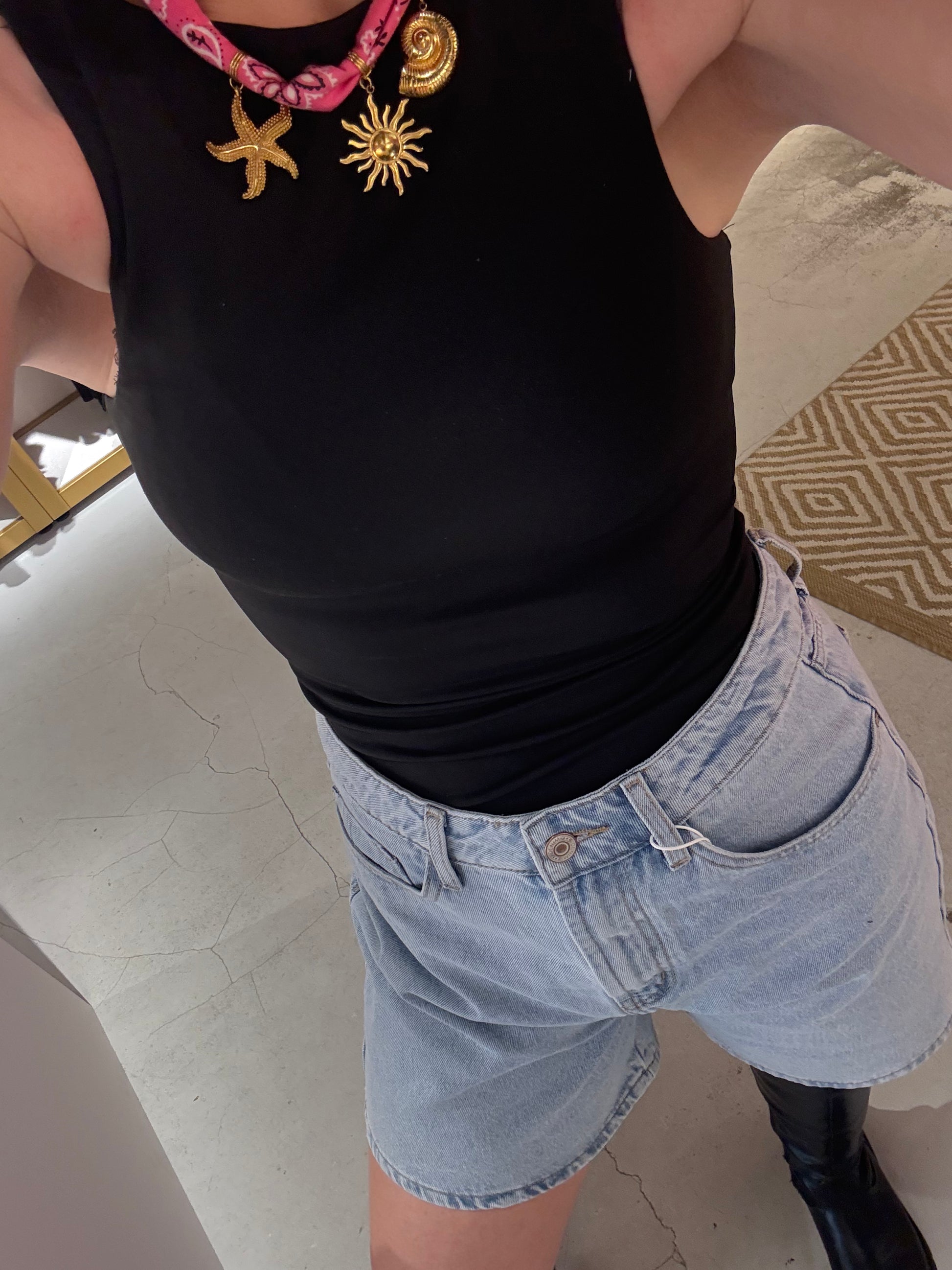 Deze denim short is de perfecte balans tussen stoer en vrouwelijk. Het iets langere model en de lichte baggy fit geven ‘m die nonchalante, relaxed vibe, zonder in te leveren op stijl. Gemaakt van zachte denim met een fijne stretch, dus hij zit niet alleen lekker, maar staat ook mega goed. Combineer ‘m met een cropped top of oversized blouse en je hebt een look die altijd werkt, van city stroll tot beach day.