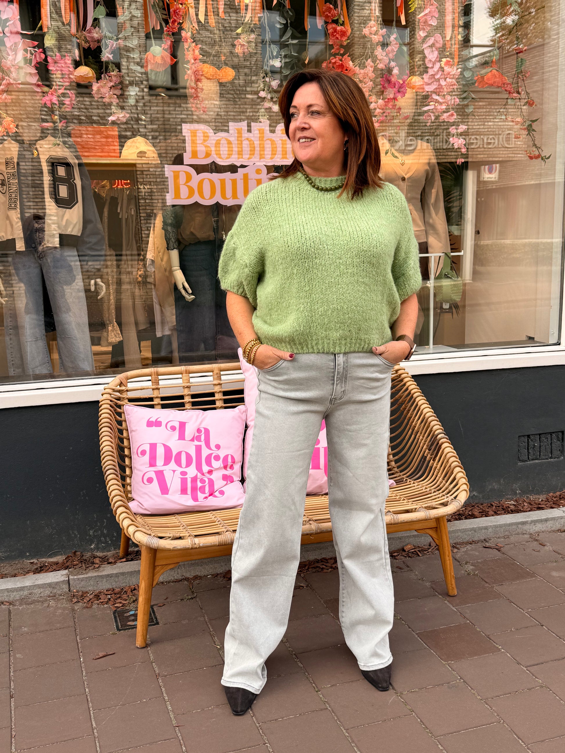 Deze gebreide trui in zachte matcha green is een echte eye-catcher voor elk seizoen. De 3/4 mouw geeft hem een speelse en luchtige uitstraling, terwijl de knit heerlijk comfy aanvoelt. Perfect om te dragen met een high-waist jeans of rok voor een moeiteloos stijlvolle look.