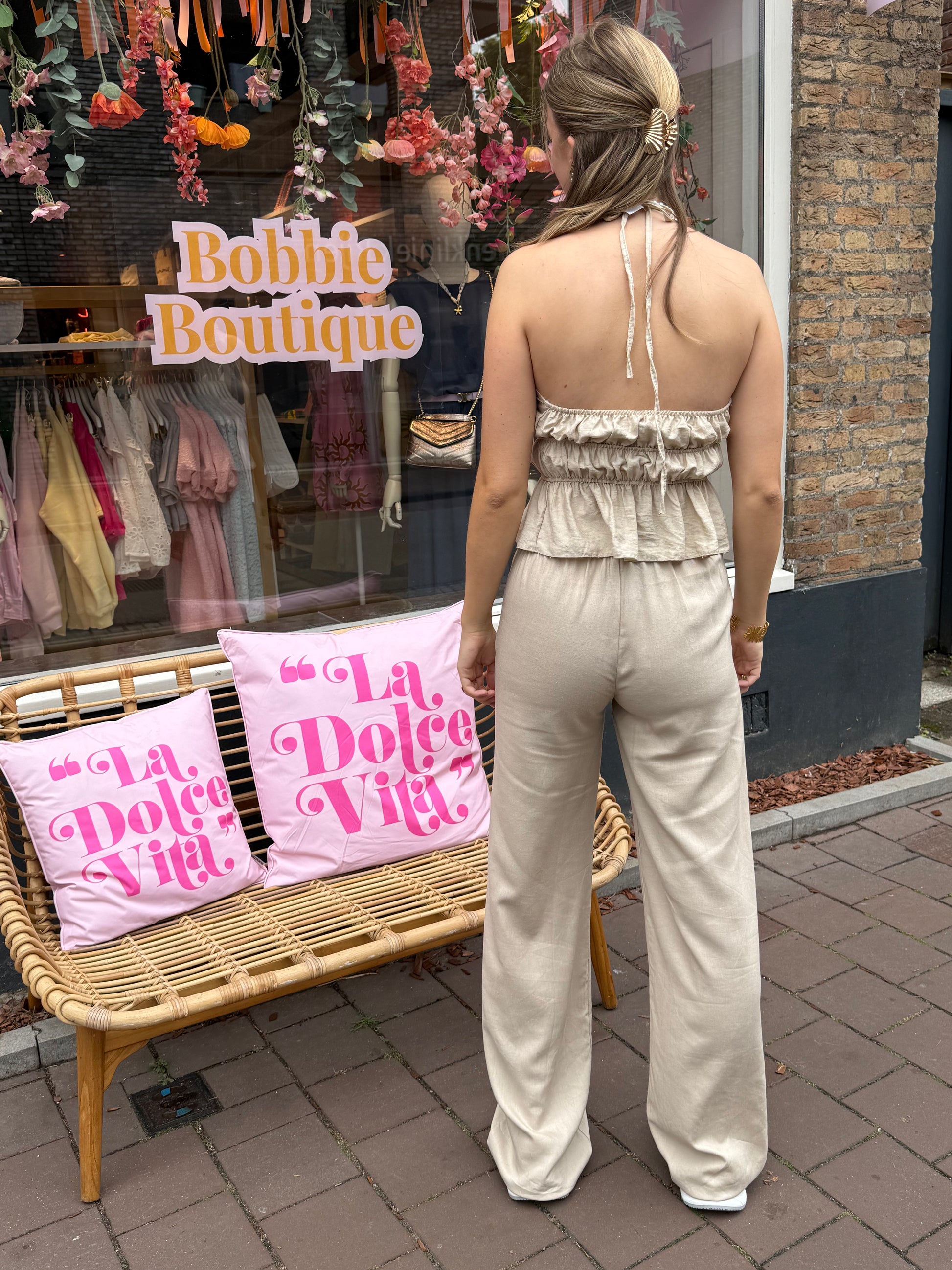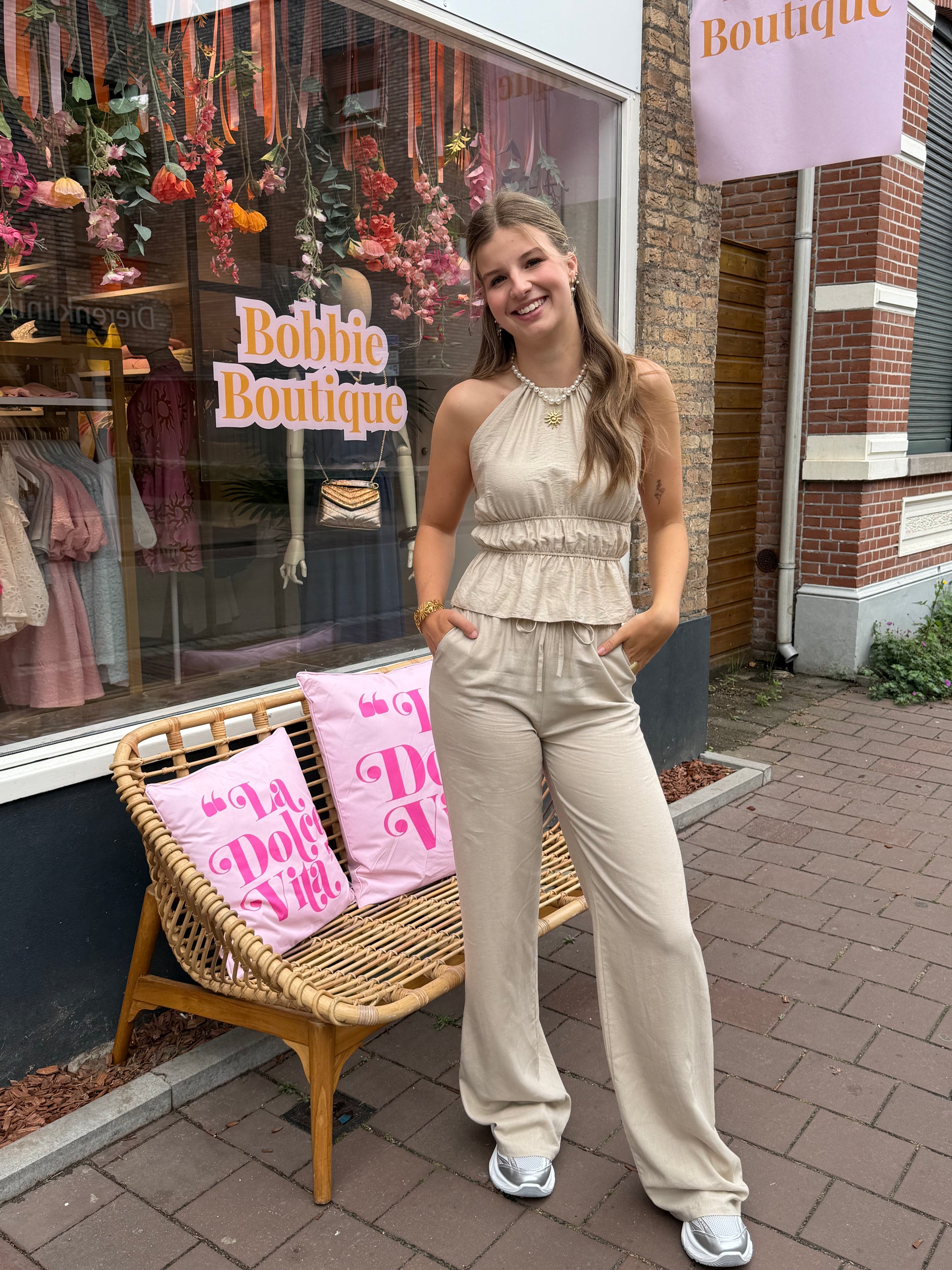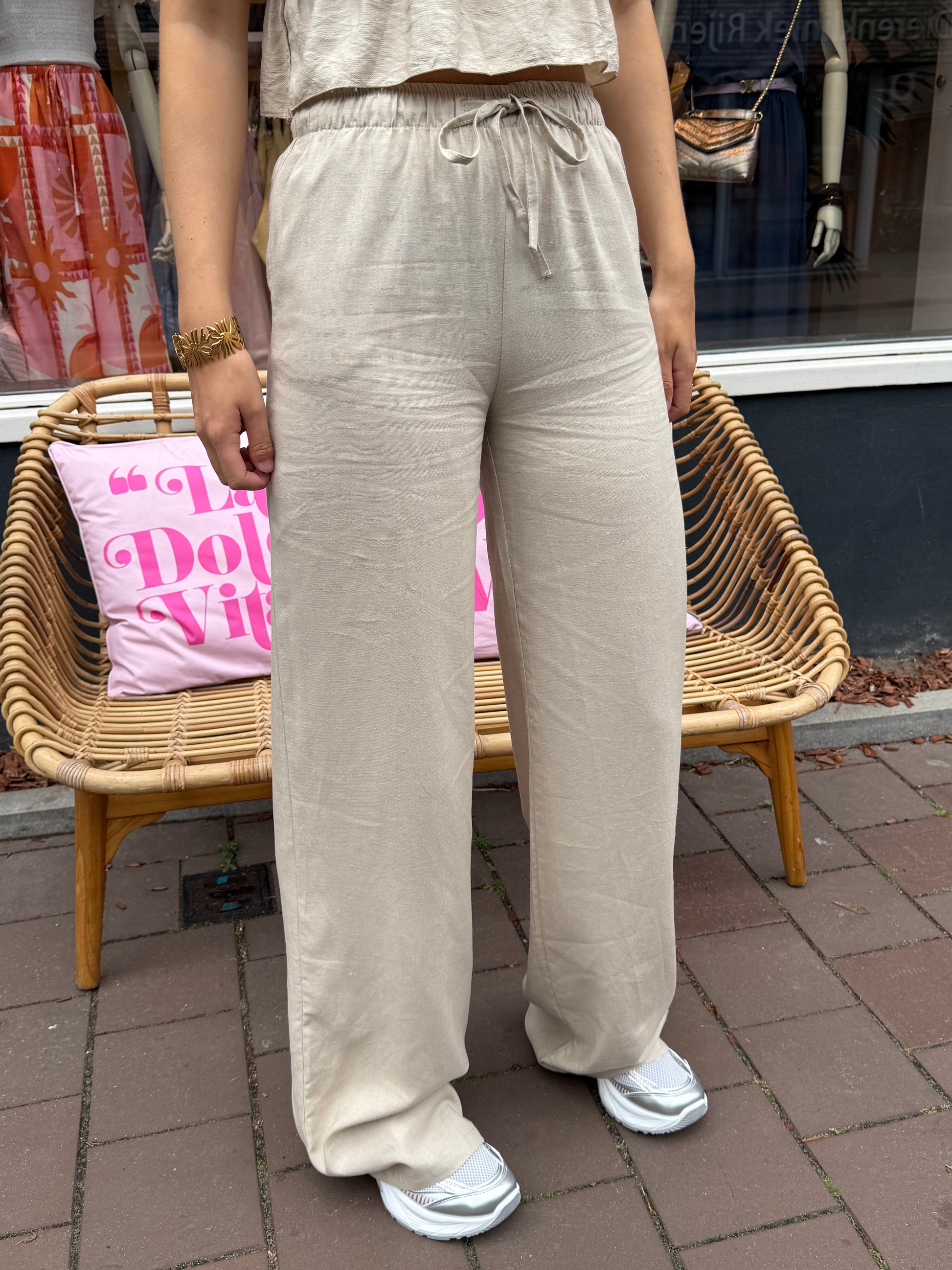 Deze beige linnen pantalon is gemaakt voor de tall girlies. De extra lengte en wijde fit geven ‘m een effortless look, terwijl de elastieke tailleband zorgt voor comfy vibes all day. Luchtig, stijlvol en super easy te stylen, een zomerfavoriet in the making.