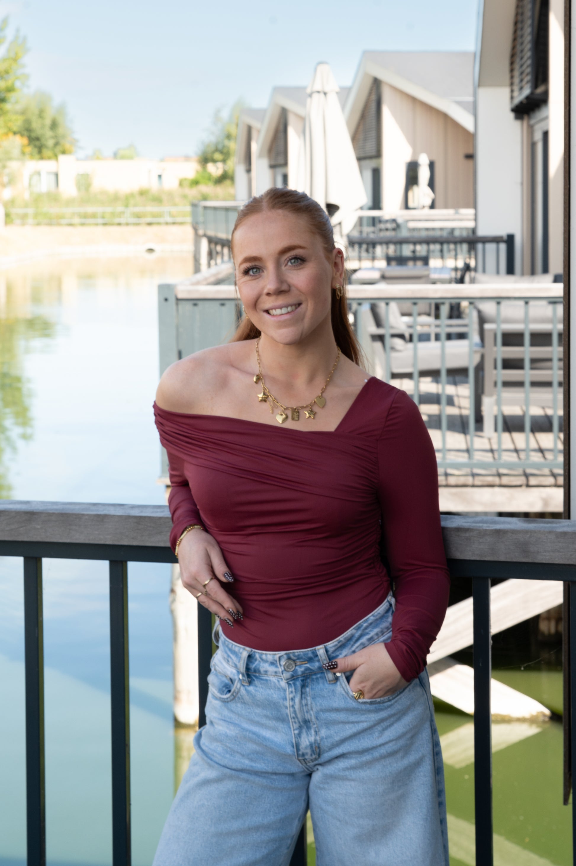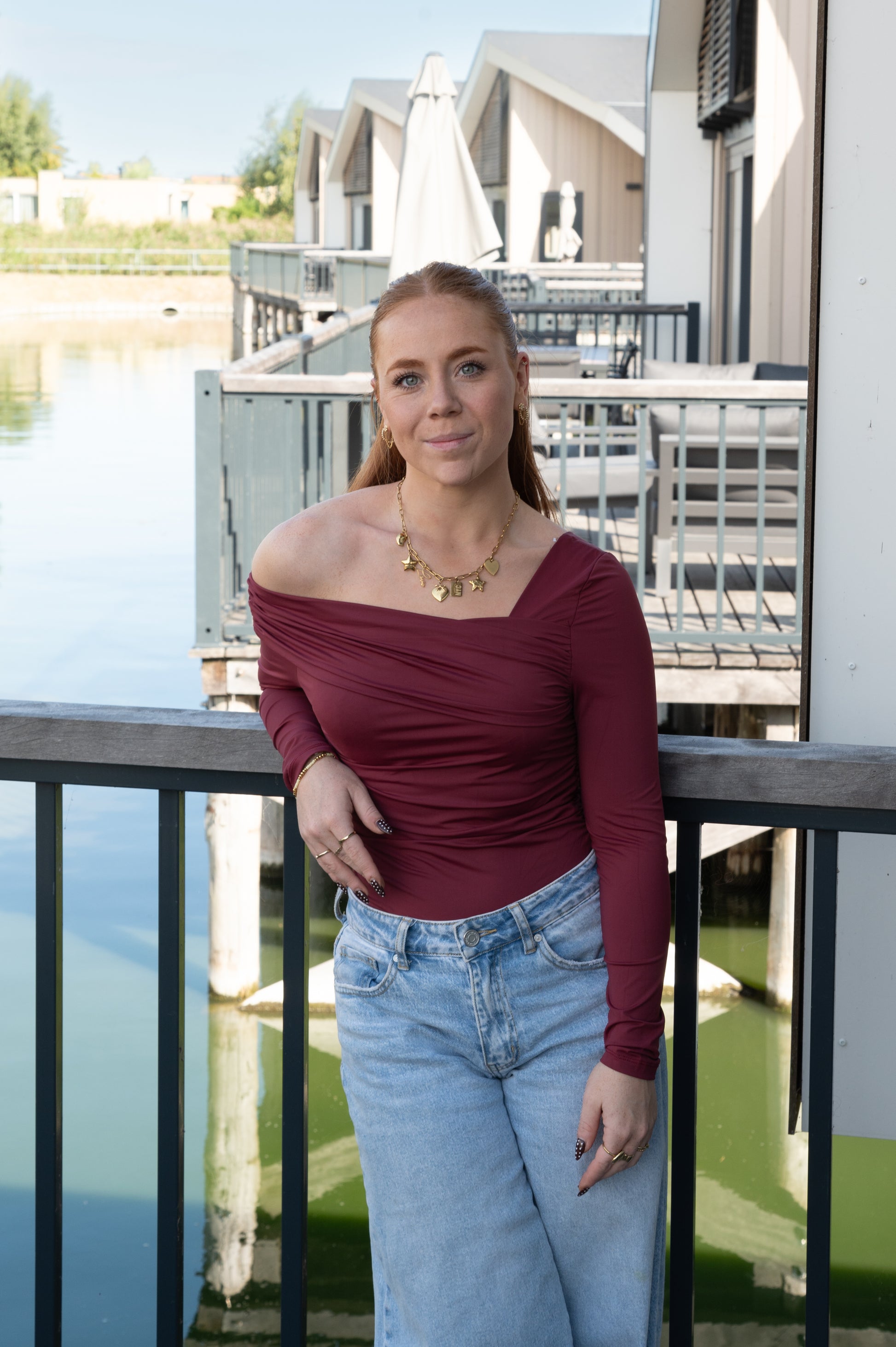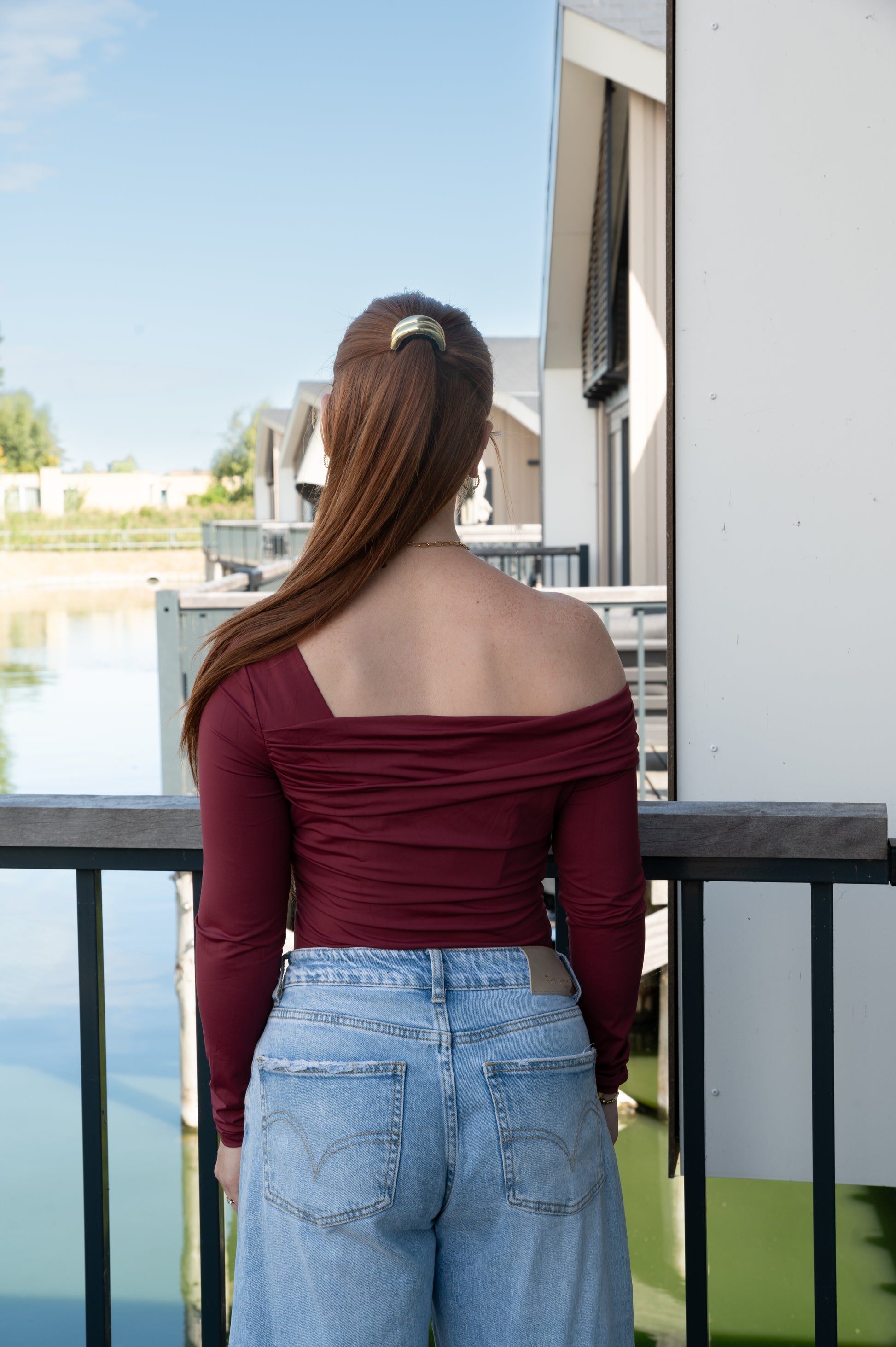 Stoer, vrouwelijk en superstijlvol! Deze bordeaux body heeft een asymmetrisch ontwerp met één off-shoulder zijde, wat zorgt voor een elegante en trendy look. Perfect om te combineren met een jeans, rok of onder een blazer voor een avondje uit of een chique casual look.