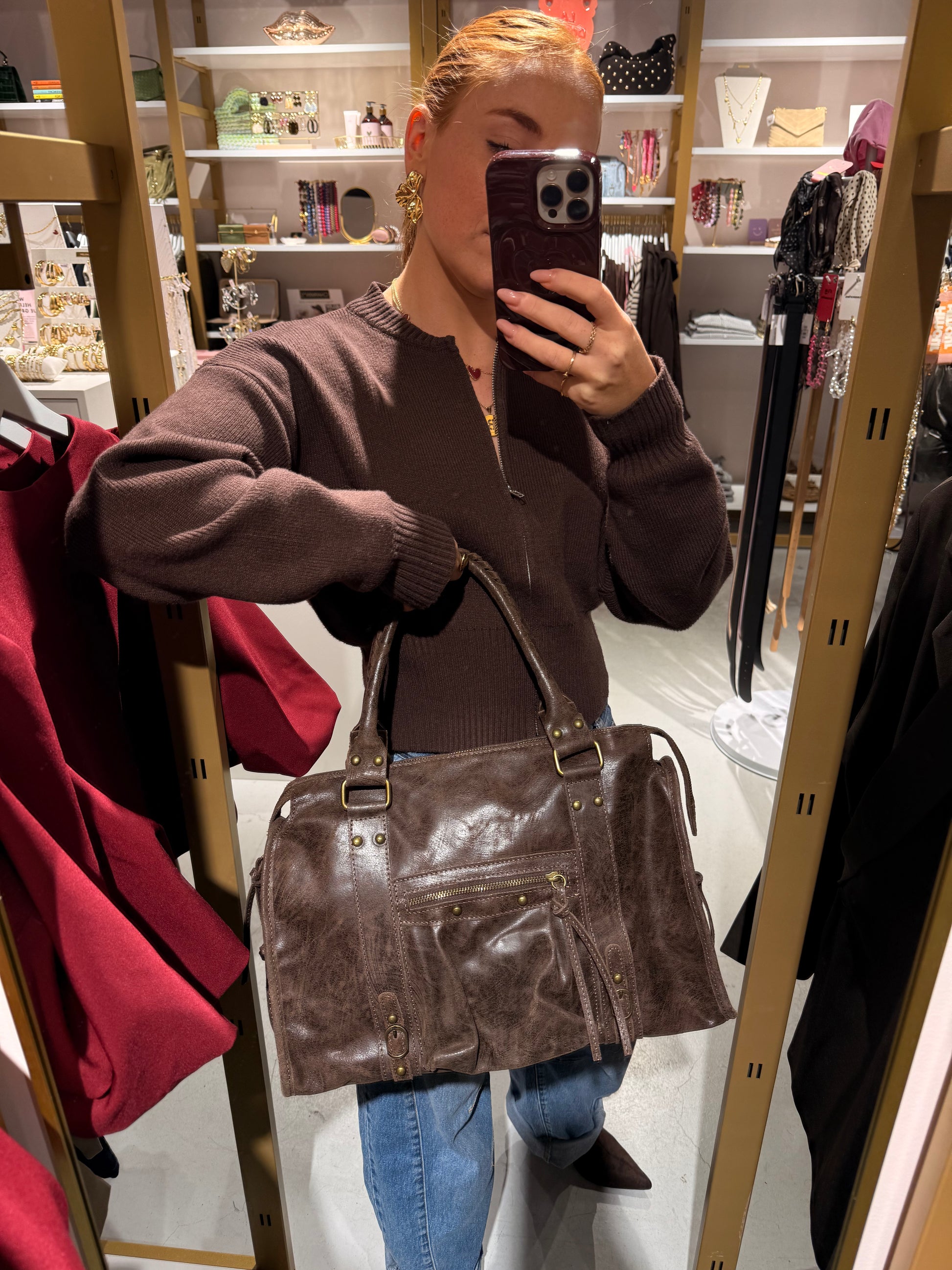 Deze grote tas van echt leer is een echte eyecatcher. De donkerbruine kleur geeft hem een stoere en stijlvolle uitstraling, terwijl het ruime formaat ervoor zorgt dat je al je essentials + laptop én meer gemakkelijk mee kunt nemen. Perfect als dagelijkse tas die zowel praktisch als fashionable is, een statement piece dat iedere outfit compleet maakt.