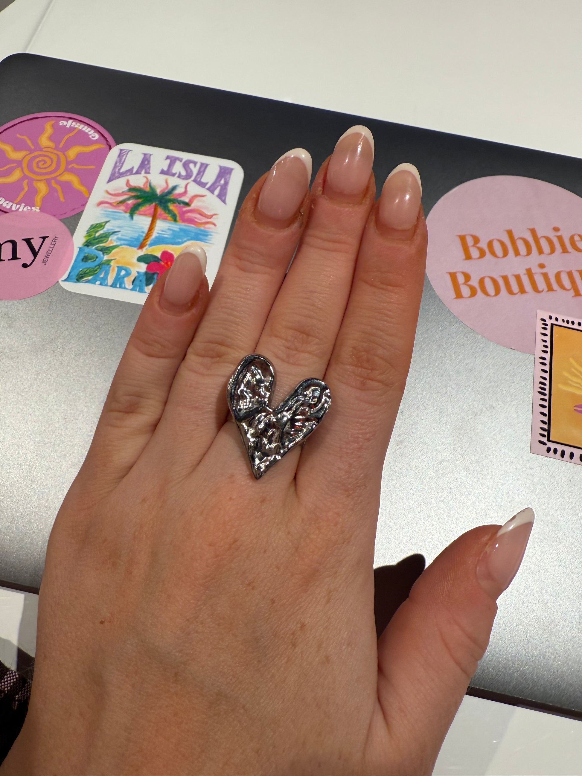 Maak een bold statement met deze grote zilveren ring in de vorm van een hart. Het opvallende ontwerp trekt direct alle aandacht en geeft je outfit een elegante, vrouwelijke touch. Perfect om solo te dragen of te combineren met andere ringen voor een trendy stacked look.