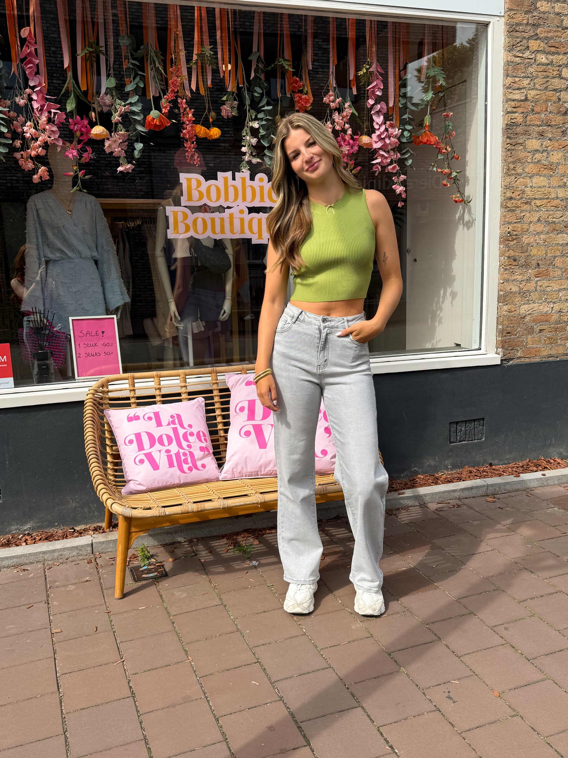 Deze top is een echte basic met een trendy twist. Het ribgebreide materiaal sluit mooi aan en voelt comfortabel aan op de huid. De ronde halslijn maakt hem makkelijk te combineren, terwijl de stevige, stretchy stof zorgt voor een flatterende pasvorm. Verkrijgbaar in fuchsia, groen en beige, perfect om eindeloos mee te stylen, van casual met jeans tot chic met een blazer of rok.