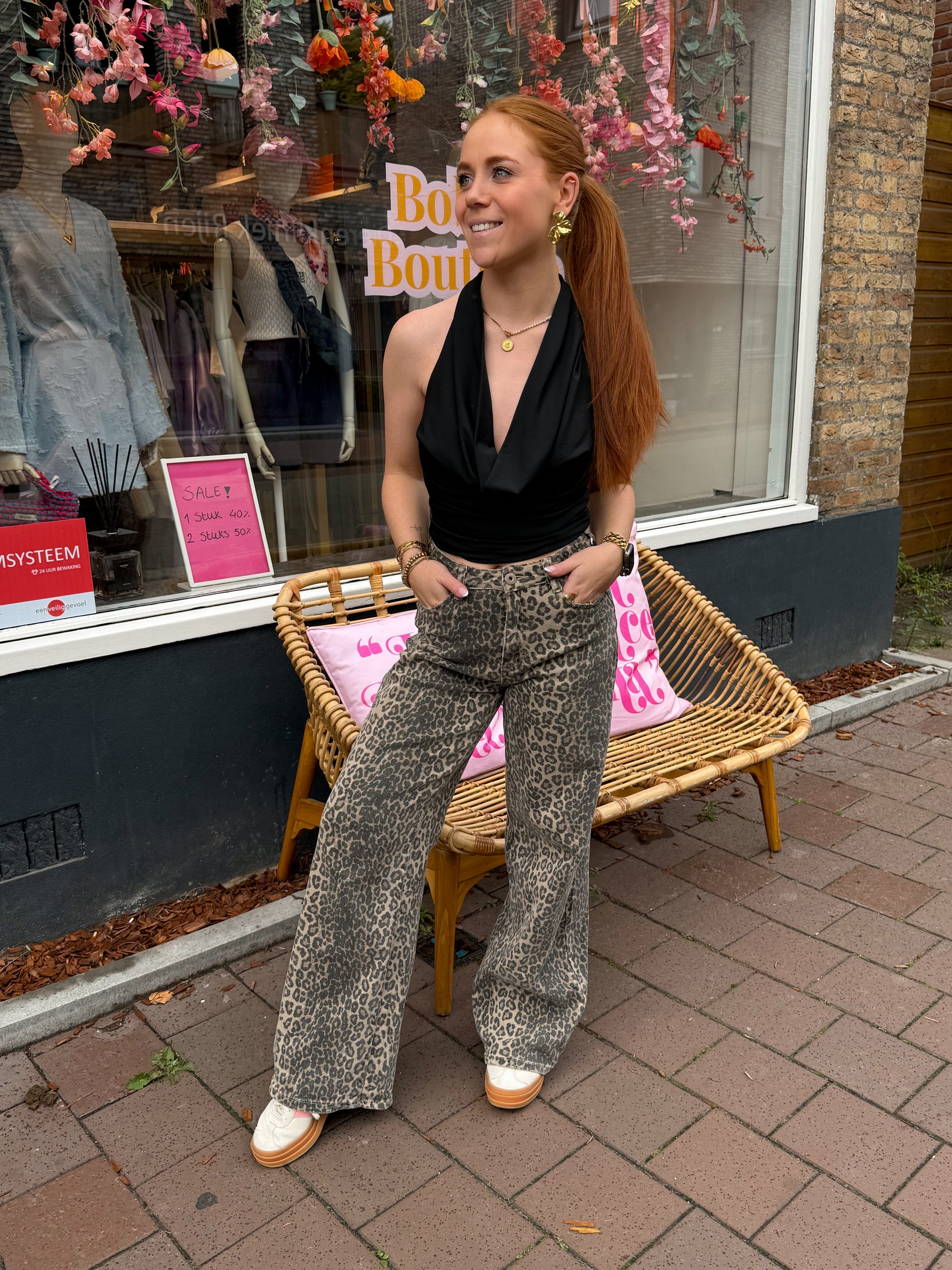 Deze zwarte haltertop met boothals is minimal, maar maakt toch echt een statement. De open rug zorgt voor een elegante twist, terwijl de stretchy stof mooi aansluit. Draag ‘m casual met een blazer of juist chique op een mooie pantalon, jouw nieuwe go-to top voor elke gelegenheid.